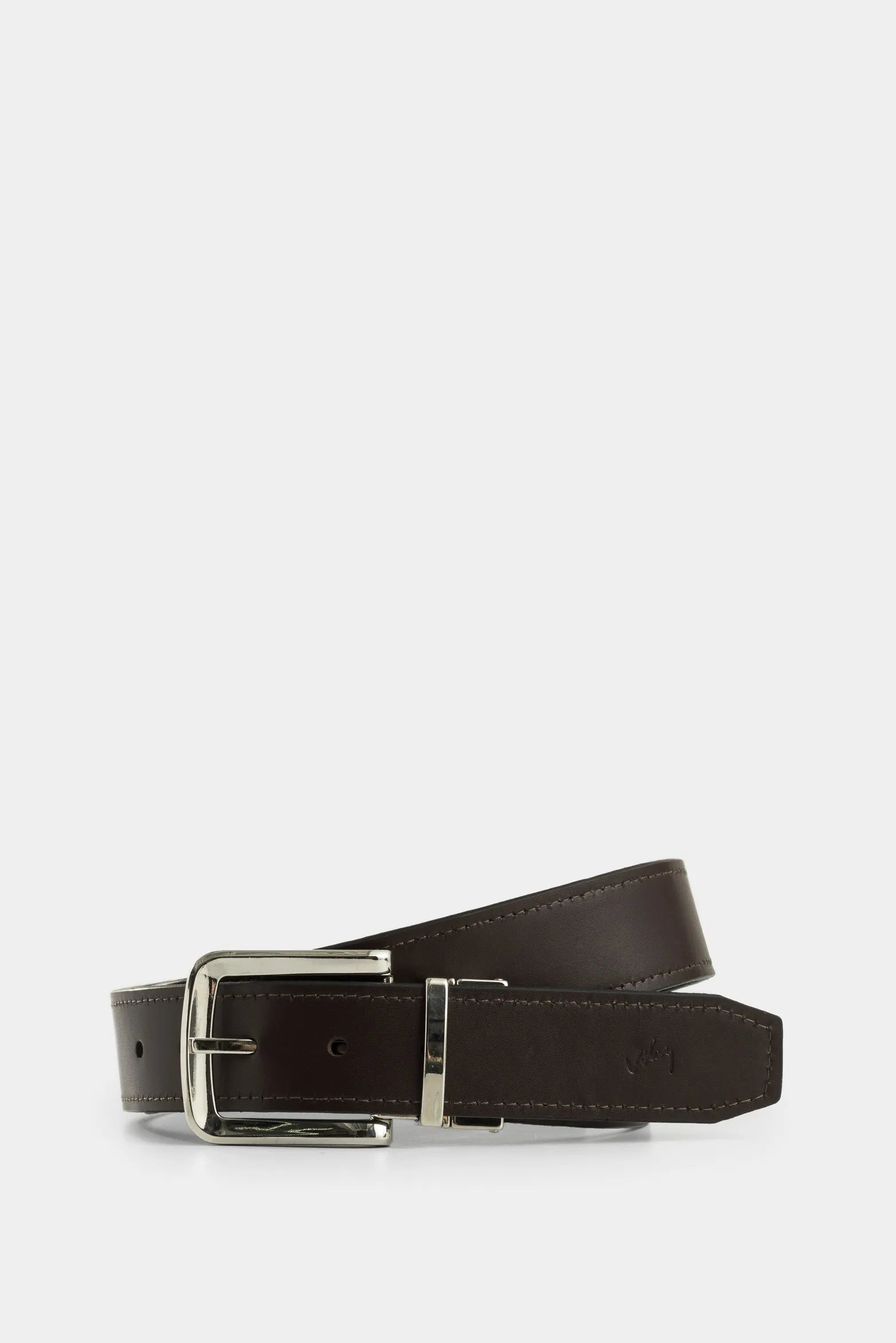 Lo mejor del mundo casual y formal en un mismo artículo. Nuestro cinturón doblefaz de cuero liso con efecto envejecido por el reverso, tiene un diseño renovado con punta en forma de trapecio y hebilla metálica reversible hace de este accesorio un indispensable.