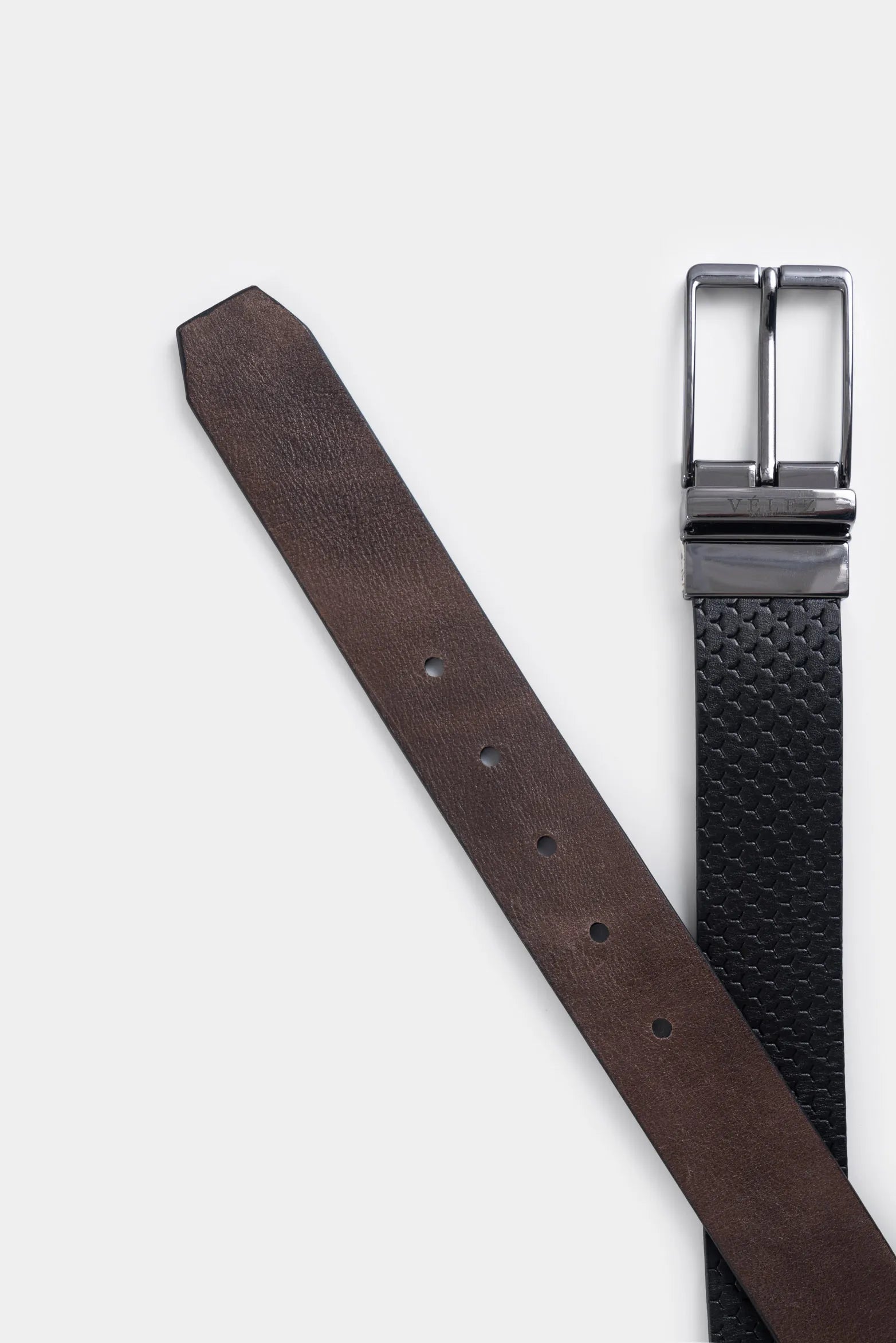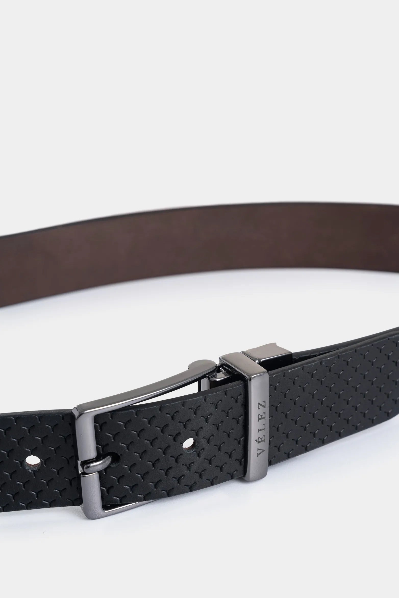 La exclusividad se refleja en cada detalle de nuestro cinturón reversible de cuero doble faz. Con un diseño que equilibra simplicidad y sofisticación, este accesorio auténtico y atemporal se adapta armoniosamente a tu estilo contemporáneo, realzando cada atuendo con su practicidad y elegancia natural. Este cinturón presenta un lado liso y otro con textura, complementado por una terminación de punta cuadrada. Su diseño ajustable a medida asegura un ajuste perfecto, combinando funcionalidad y estilo en una pieza de lujo artesanal que exalta nuestro ADN Vélez.