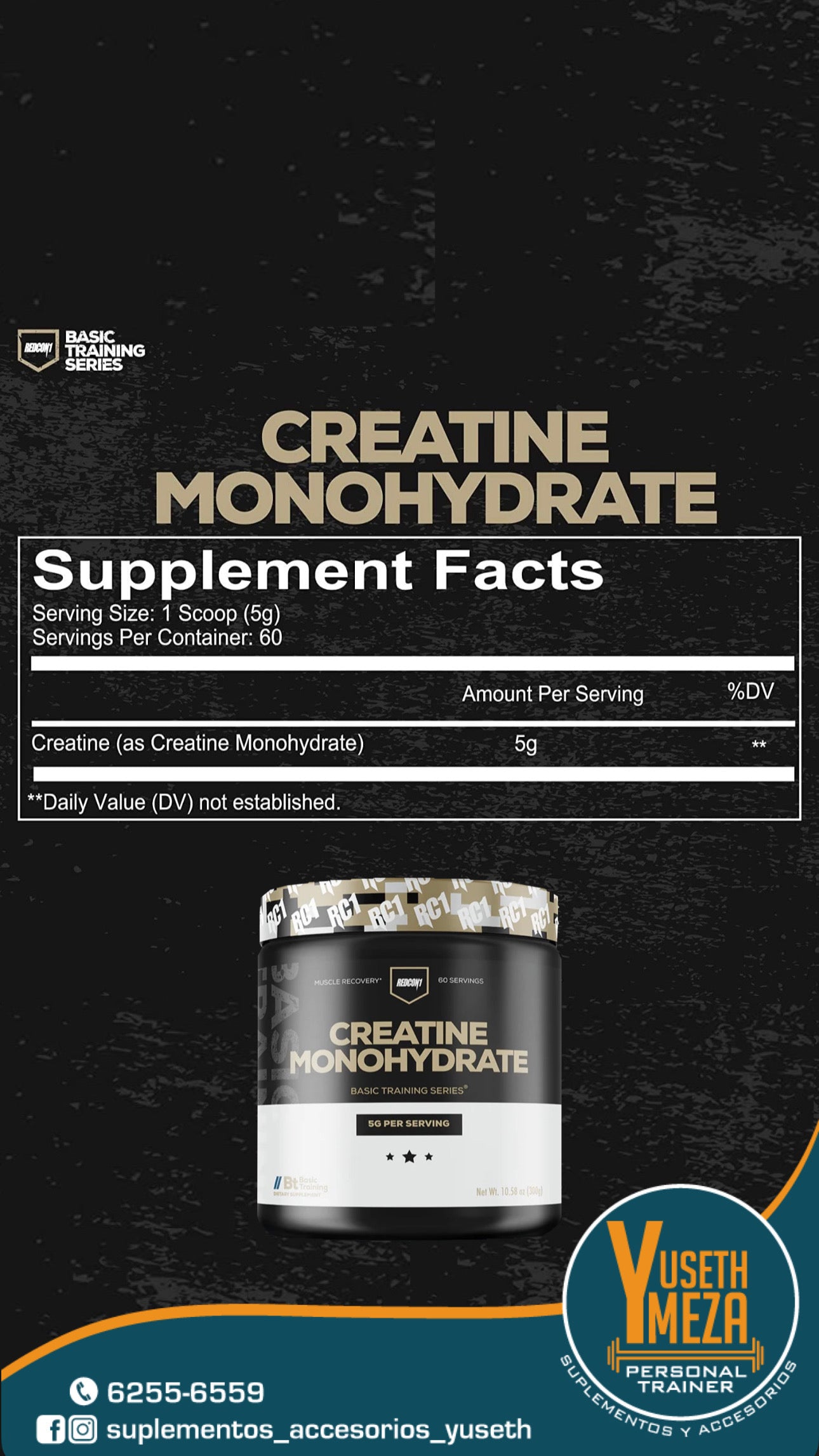CREATINA MONOHIDRATADA REDCON1/ 60 Servidas/ 5g cada servida.