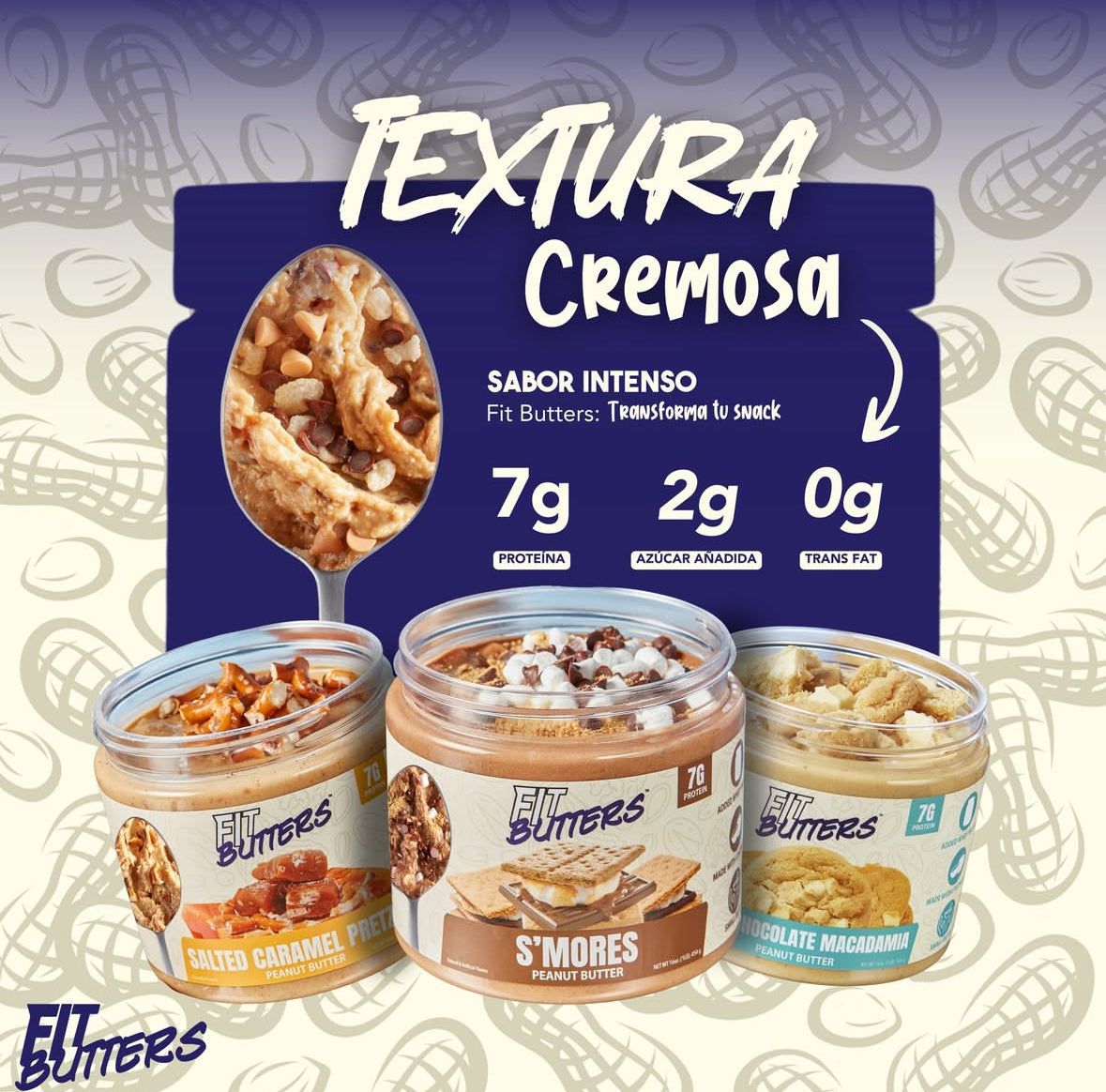 Fit Butters se ha unido al icónico cereal PEBBLES™ para lanzar Fit Butters Cocoa PEBBLES™ ¡Mantequilla de Anacardos! Cada frasco está elaborado con anacardos tostados, aislado de proteína de suero sabor Cocoa PEBBLES™, aceite de coco y cubierto con auténtico cereal Cocoa PEBBLES™.