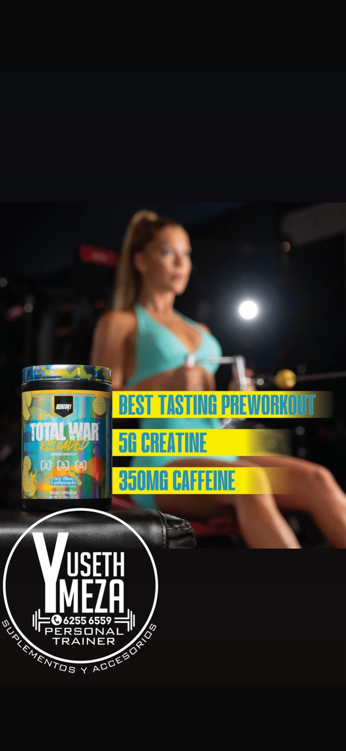 La línea TOTAL WAR acaba de expandirse: TOTAL WAR RELOADED es un nuevo preentrenamiento completamente cargado que ofrece un sabor increíble, una intensidad dura y 5 g de creatina para apoyar la fuerza y el rendimiento. Con una poderosa mezcla de energía, resistencia e ingredientes de bombeo, está diseñado para alimentar tus sesiones de entrenamiento más exigentes.